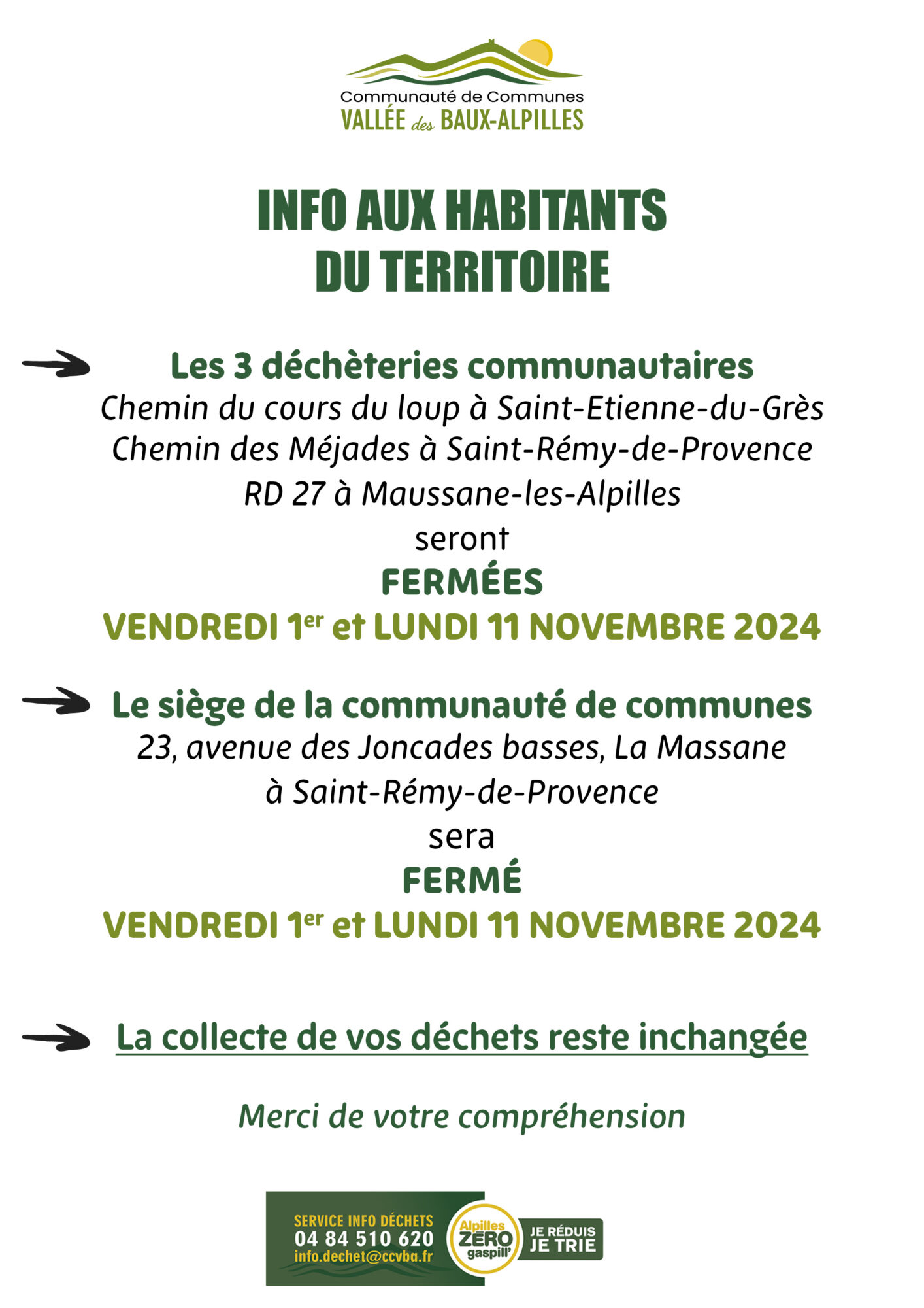 La déchetterie, en revanche, sera fermée ces jours-là.